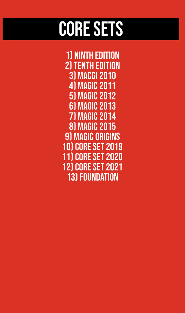 Folgende 13 Core Sets sind momentan Legal für Roll4Commander und sollte ein neues Core Sets erscheinen kommt dieses auch auf die Liste.