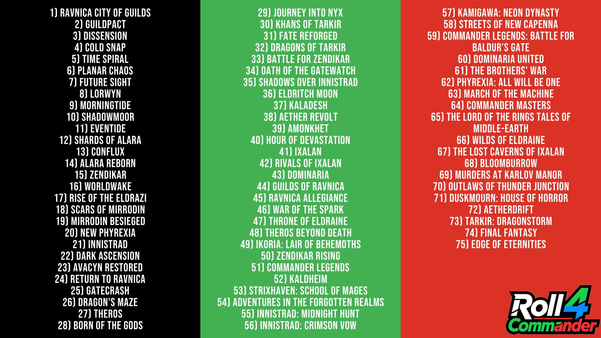 Neben den Coresets sind momentan folgende 75 Magic Sets Legal für Roll4Commander.