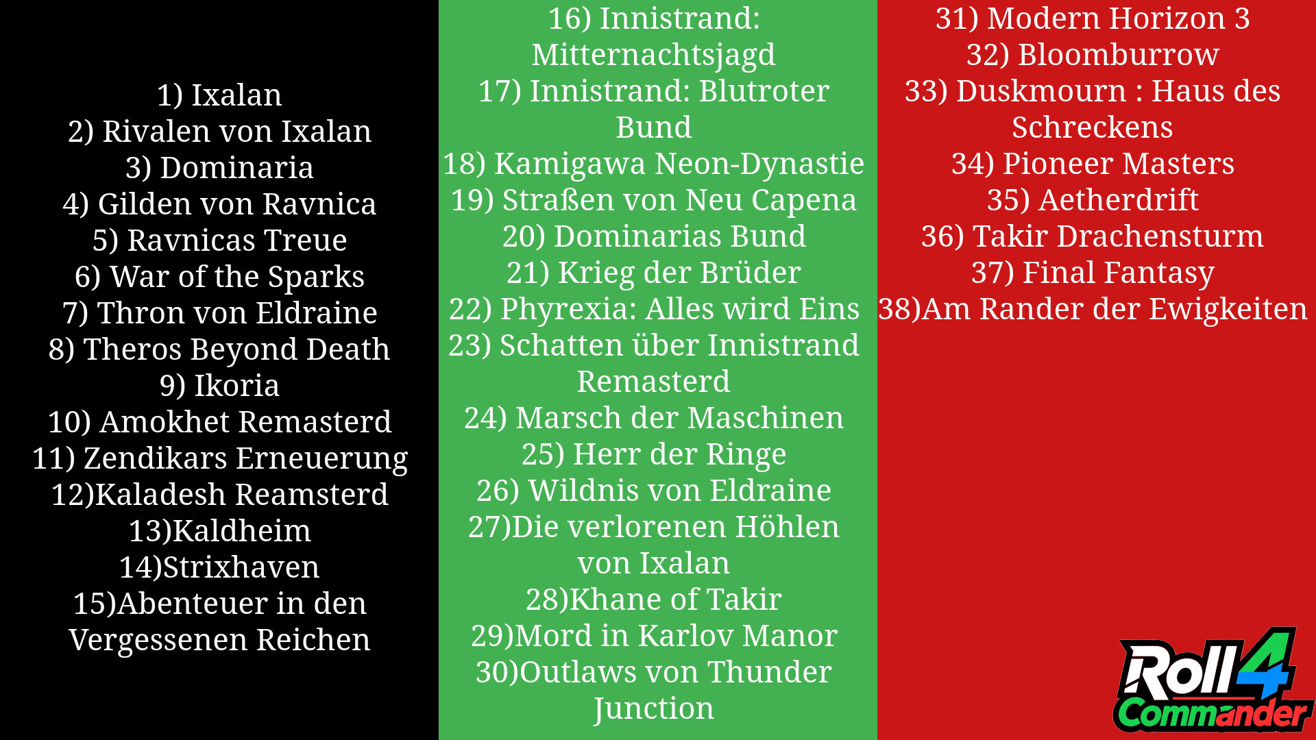 Folgende Sets sind für die Arena‑Edition legal; wie bei der normalen Version lasse ich euch über die Universe‑Beyond-Sets sechs Wochen nach dem Release abstimmen